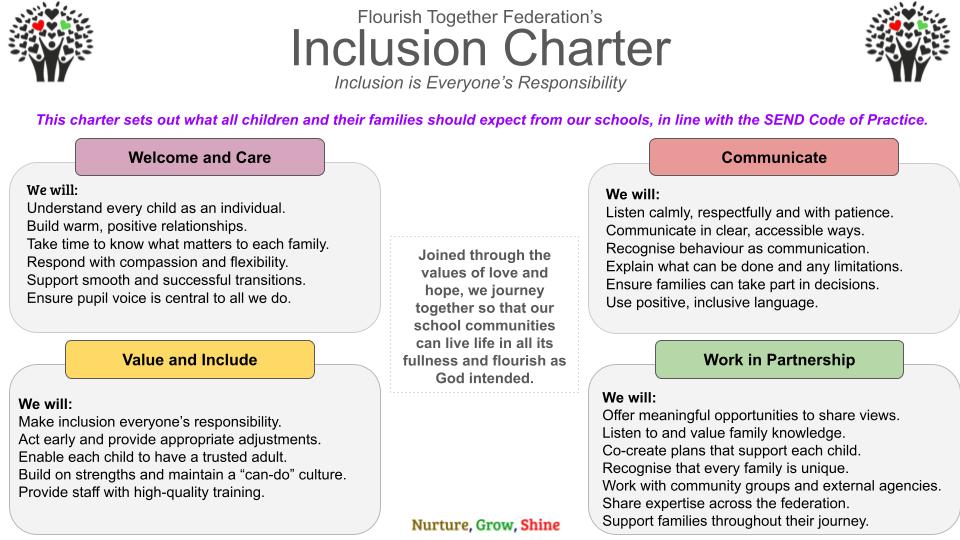 These pages are designed to give you clear guidance, whether you are looking for practical strategies, school policies, or details of external services. Remember, you are not alone—if you have any questions or need further support, you can always speak to our Inclusion Leader, Mrs Butcher, or your child’s class teacher, who will be happy to help.